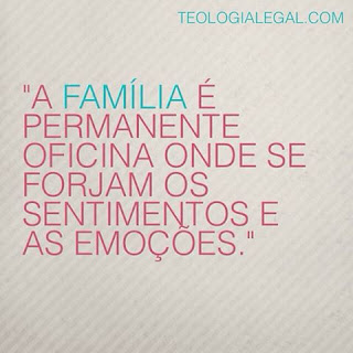 A Família é permanente oficina onde se caldeiam os sentimentos e as emoções, dando-lhes direção correta e a orientação segura para os empreendimentos do futuro.
